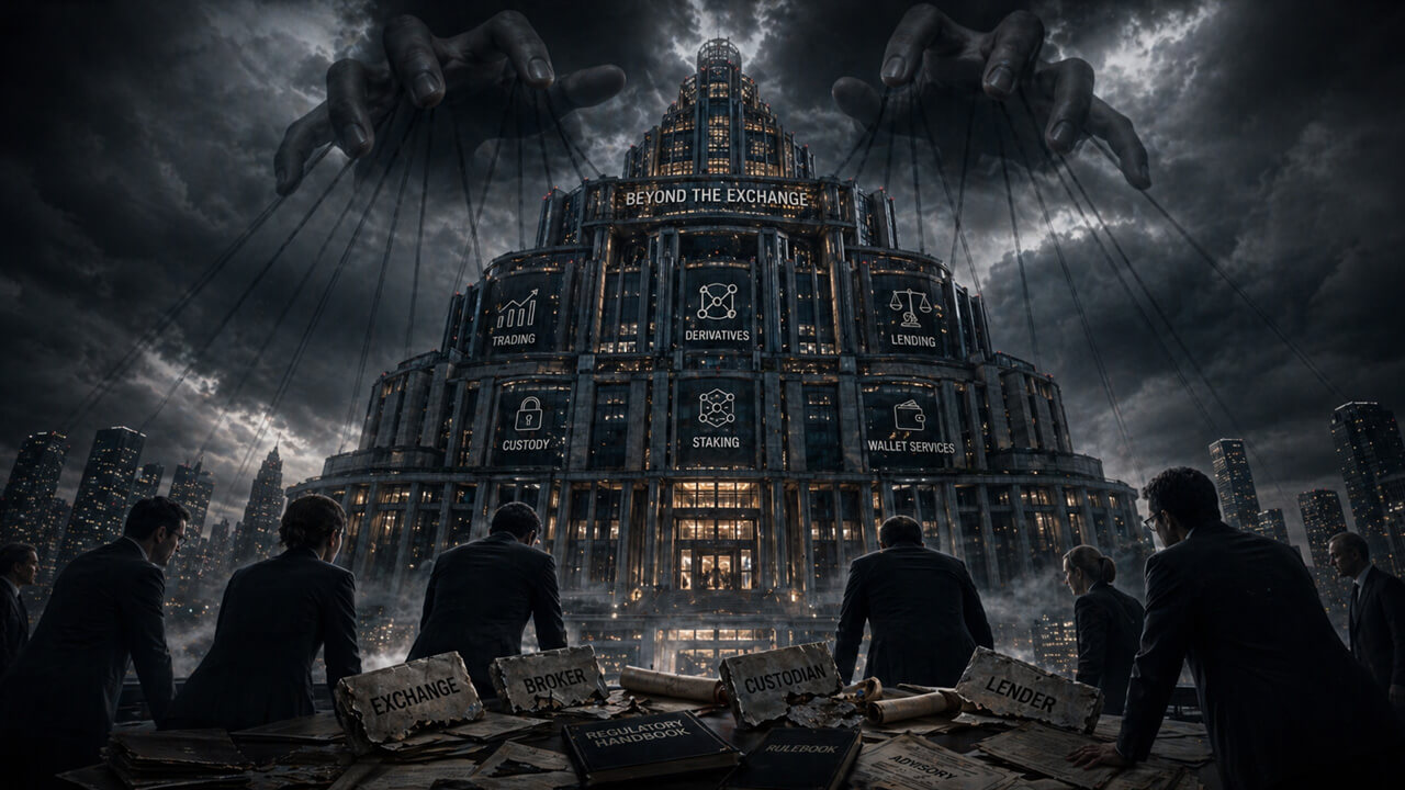 A single firm may operate as an exchange, custodian, broker, lender, staking provider, derivatives venue, and wallet infrastructure provider simultaneously. Each activity may fall under a different regulator, or outside clear oversight altogether, depending on the jurisdiction.